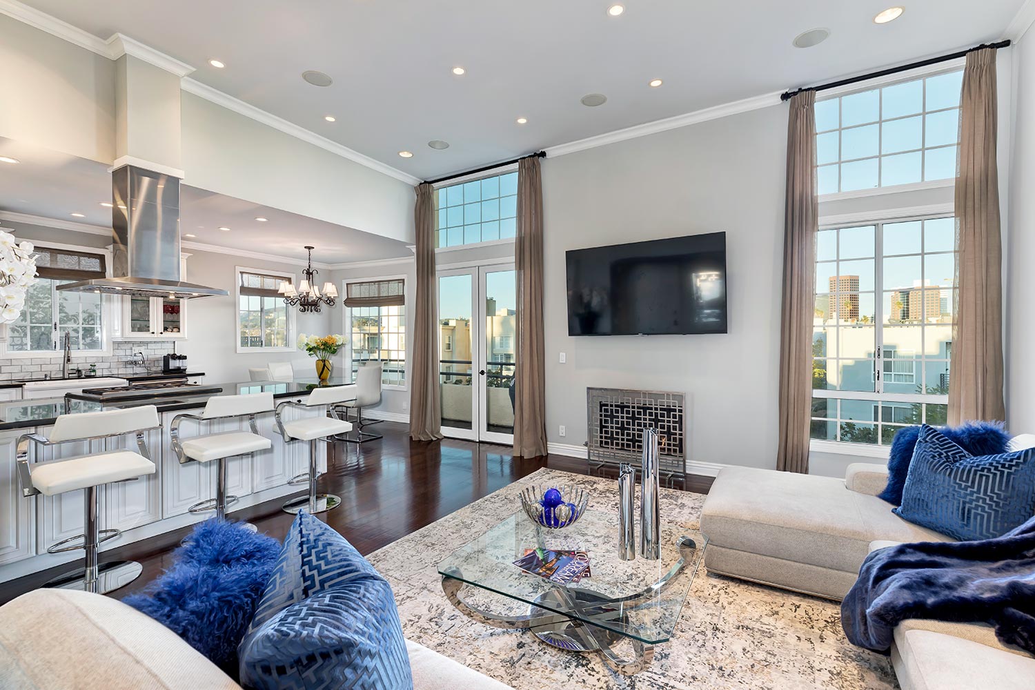 This bright, spacious and updated 2-bedroom, 2-bath front facing, single level penthouse condo with no shared walls is close to Montana Ave, San Vicente & Wilshire shops & restaurants. Generous open, high-ceiling living room, plus dining & kitchen with Viking & Wolf appliances and opening to balcony with views of the Getty Center. Large master suite with walk in closet, spa like bathroom with spacious shower and double sink vanity. Second bedroom with large closet. Additional features include wood floors, laundry, central A/C, gas fireplace, side-by-side parking. Desired boutique style building with only 6 units, low HOA dues.